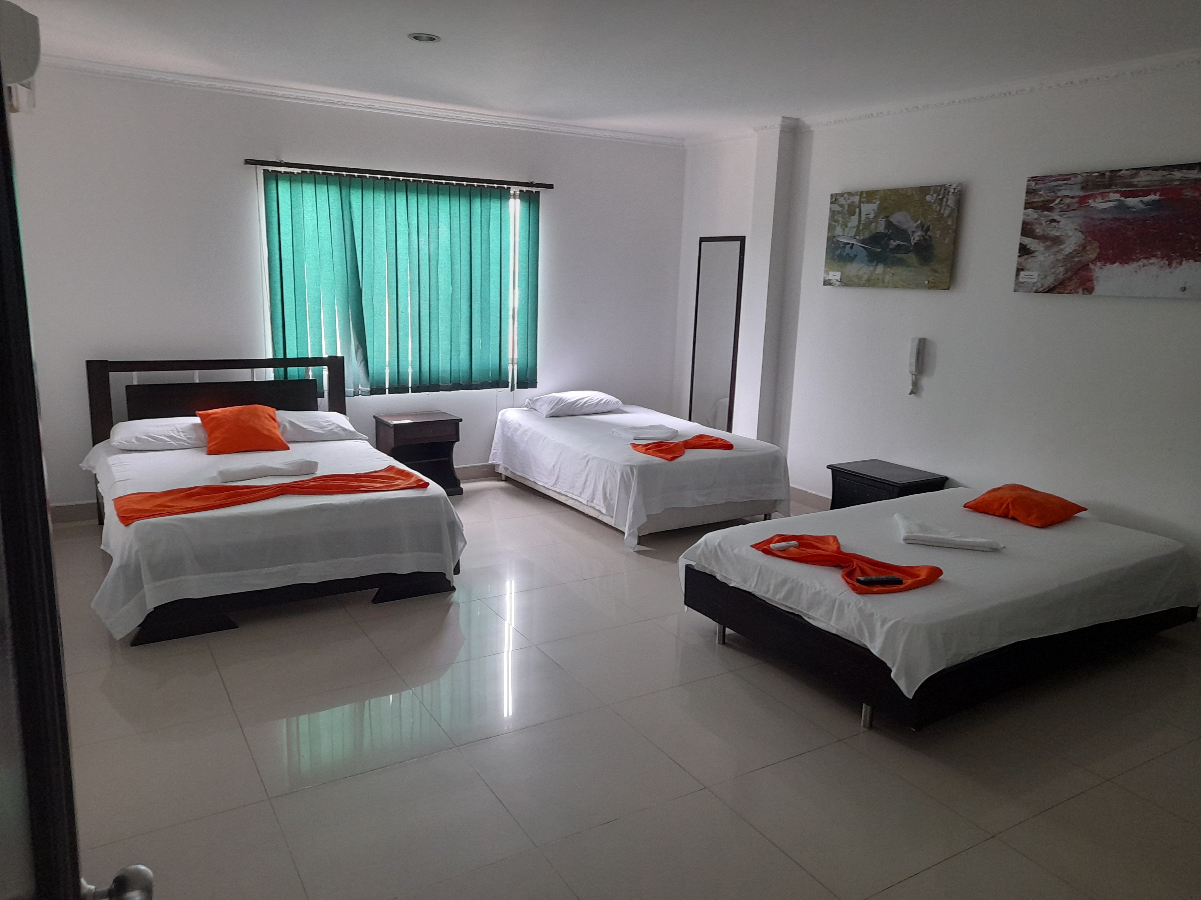 Habitación de 3 camas,1 doble y 2 sencillas, aire acondicionado, balcon, nevera, armario, baño, ideal para pareja o persona sola.